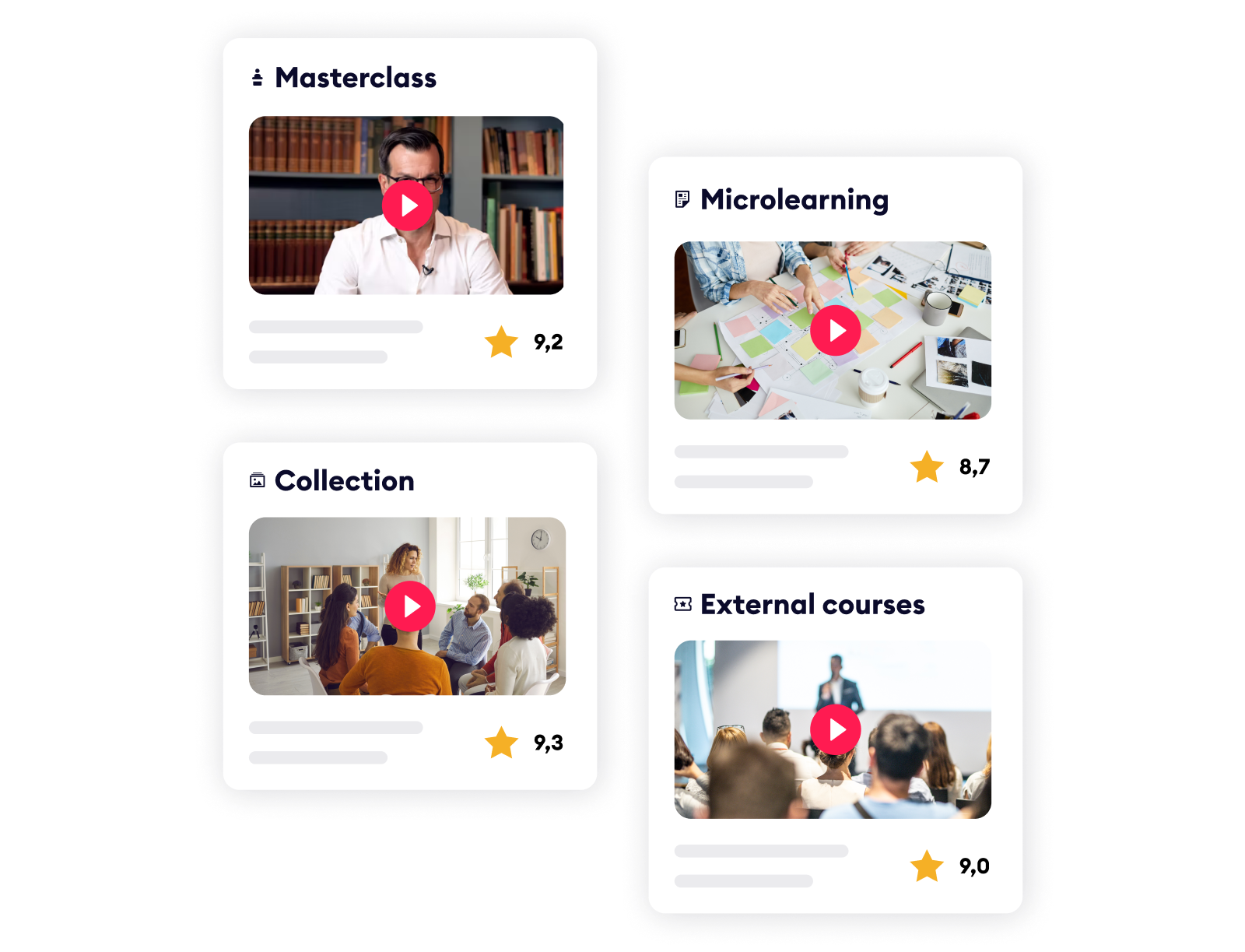 Kehitä tavalla, joka sopii parhaiten sinulle ja kollegoillesi. Käytössäsi on laajin valikoima oppimismetodeja, -formaatteja ja -resursseja. Luo omia valmennusohjelmia, tuo alustalle ulkoista sisältöä ja yhdistä ulkopuolisiin kirjastoihin.